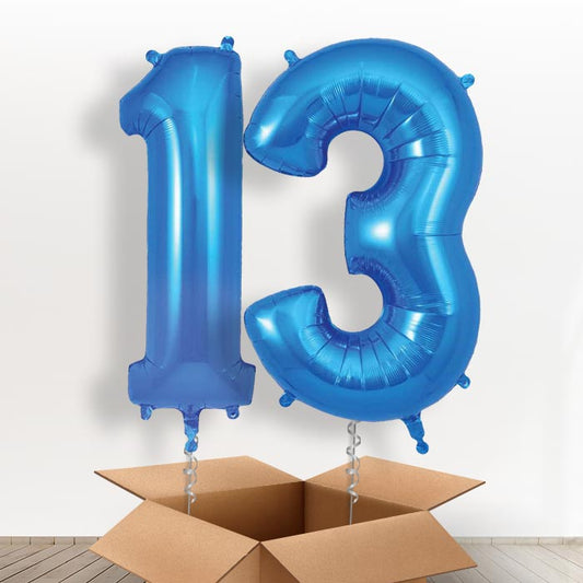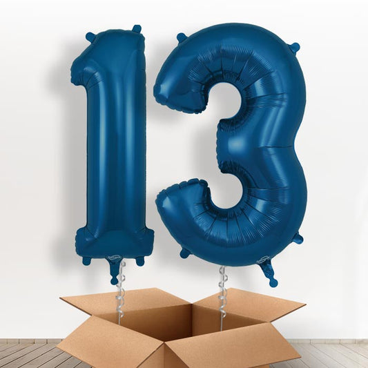 Blue 13th Birthday Helium Balloon Numbers in a Box