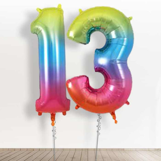 Big Rainbow 13 Number Balloons in a Box: 13th Birthday Balloons
