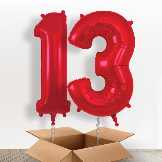 Red 13 Balloons in a Box: 13th Birthday Number Balloons