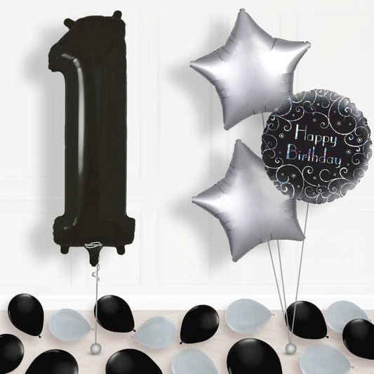 Black & Silver 13th Birthday 5 Helium Cluster Balloons