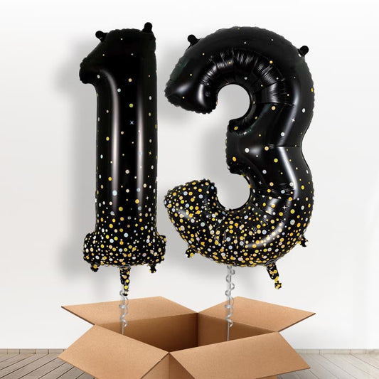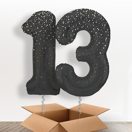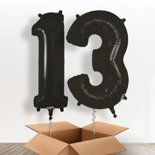 Black 13 Balloons in a Box: 13th Birthday Number Balloons