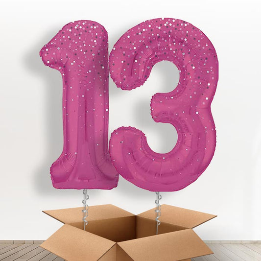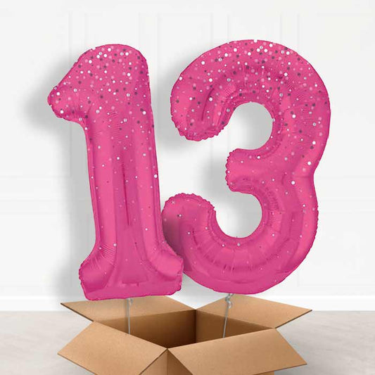 Pink 13th Birthday Helium Balloon Numbers in a Box