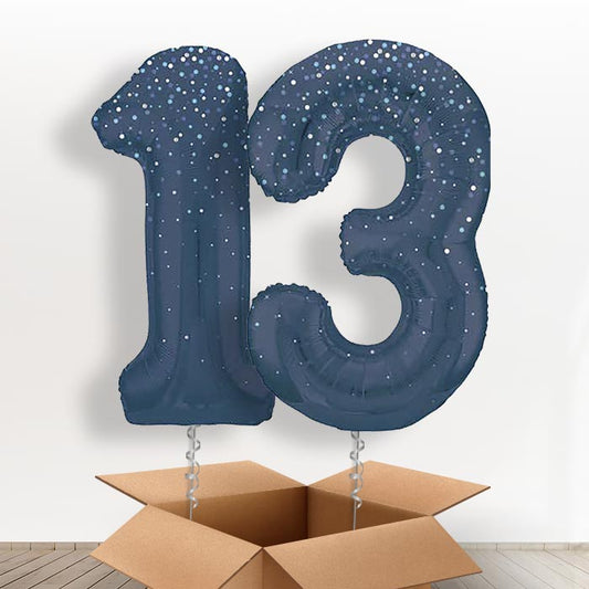 Blue 13th Birthday Helium Balloon Numbers in a Box