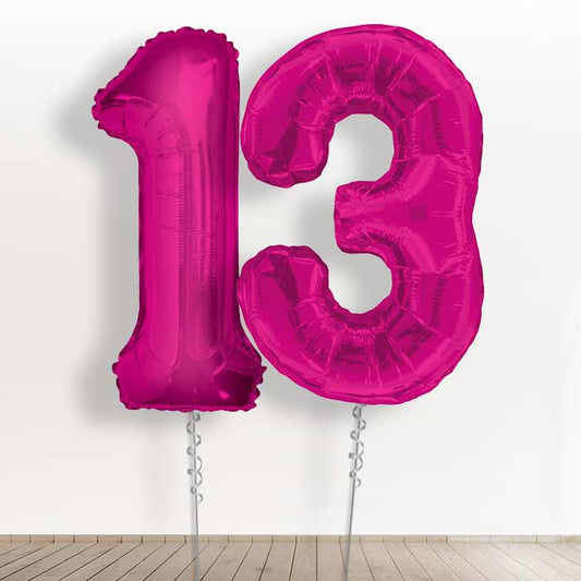 Hot Pink and Silver 13th Birthday Helium Balloon Pair