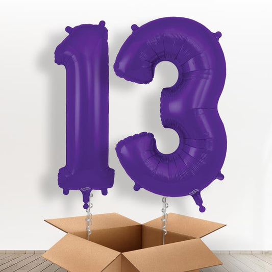 Purple 13 Balloons in a Box: 13th Birthday Number Balloons