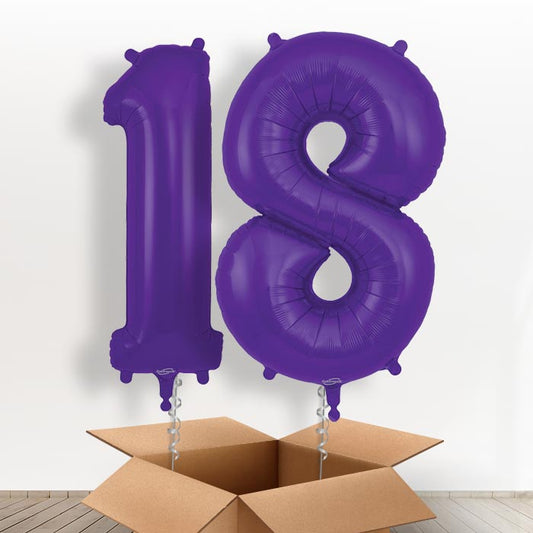 Purple 18 Balloons in a Box: 18th Birthday Number Balloons