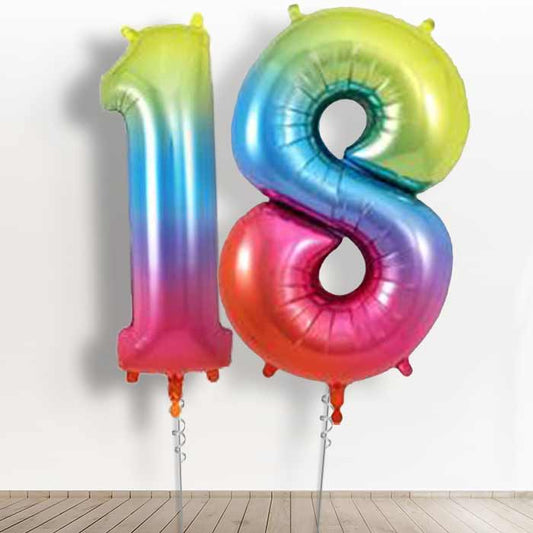 Rainbow 18 Birthday Number Helium Balloons Delivered