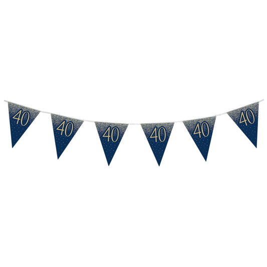 Navy & Gold Glitter 40th Birthday Bunting 11 flags 3.9m