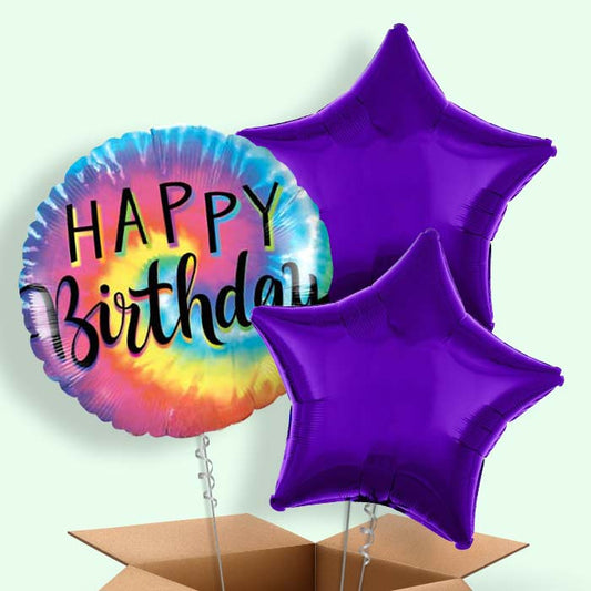 Tie Dye Happy Birthday Helium Bunch of Balloons (Trio)