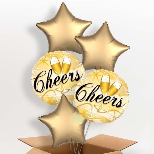 Cheers Glasses Gold Balloon Cluster Inflated with Helium
