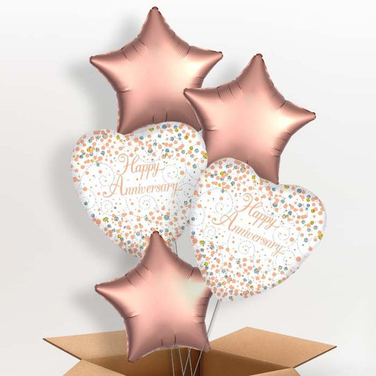 Happy Anniversary Rose Gold Helium Cluster Balloons