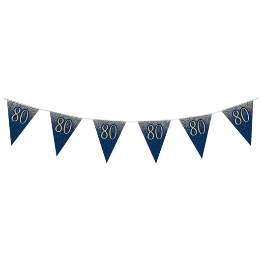 Navy & Gold Glitter 80th Birthday Bunting 11 flags 3.9m