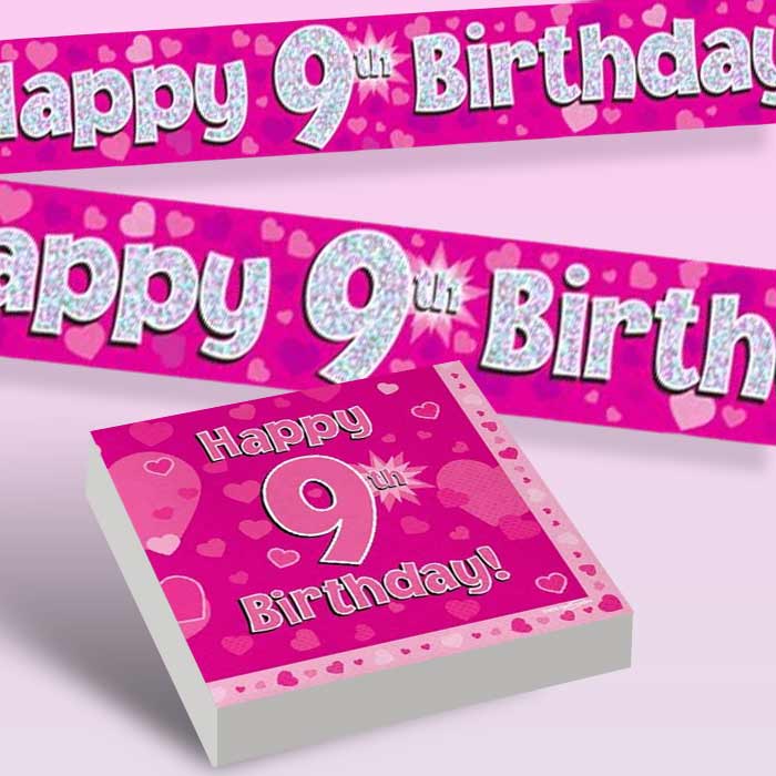 Celebrate their 9th Birthday with our Pink Heart 9th Birthday party range!...