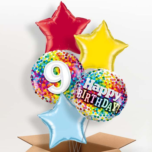 We have an age 9 helium balloon selection that you can send as a 9th birthday balloon in a box, as well as age 9 balloons that you can inflate yourself.