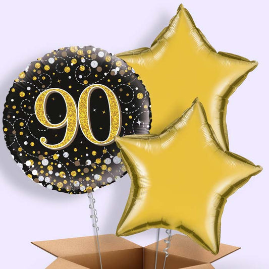 Black Gold 90th Birthday Helium Balloons Delivered
