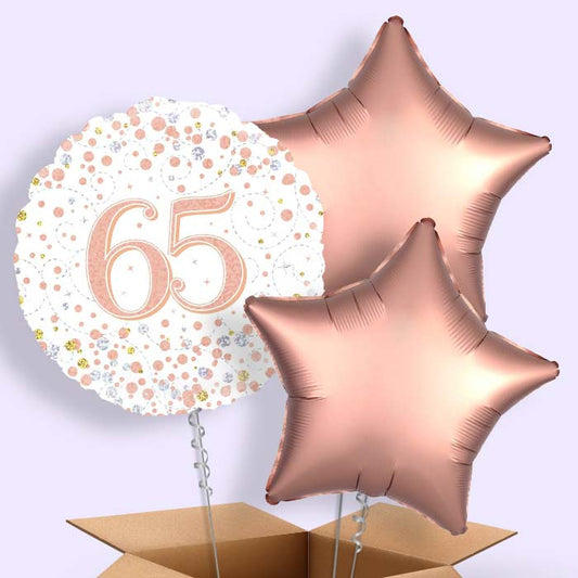 Rose Gold and White 65th Birthday Helium Balloon in a Box