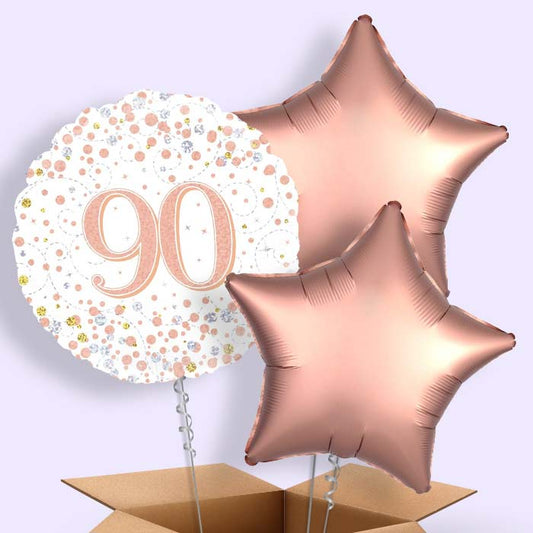 Rose Gold and White 90th Birthday Helium Balloon in a Box
