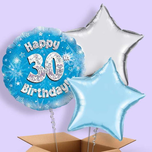Happy 30th Birthday Blue Stars Helium Balloon in a Box