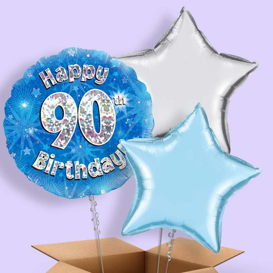 Happy 90th Birthday Blue Stars Helium Balloon in a Box