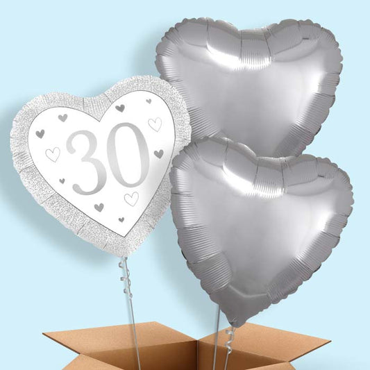 Silver Happy 30th Anniversary Heart Helium Balloon in a Box