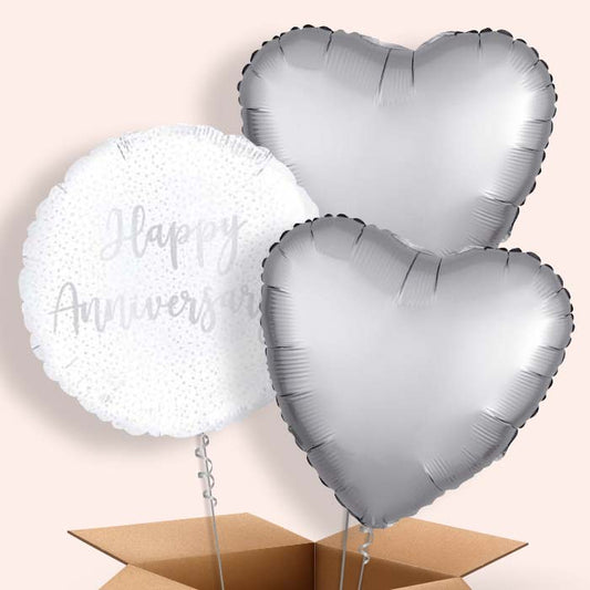 Silver Confetti Happy Anniversary Helium Balloons in a Box