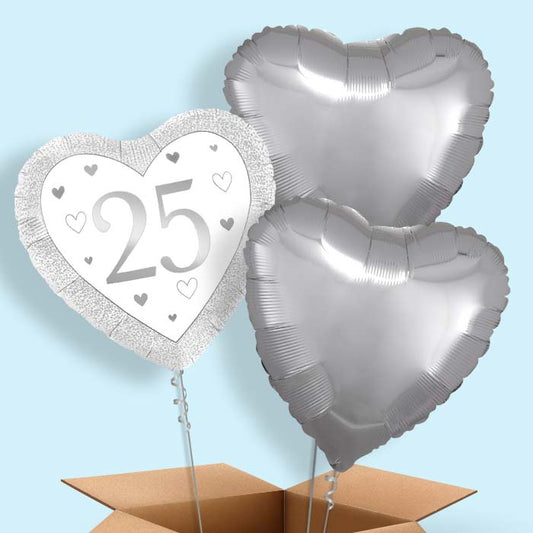 Silver 25th Wedding Anniversary Helium Balloons in a Box