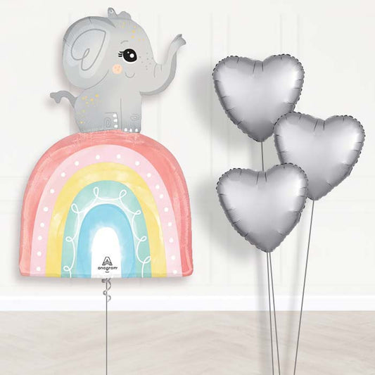 Baby Elephant with Rainbow Balloon Bouquet Delivery