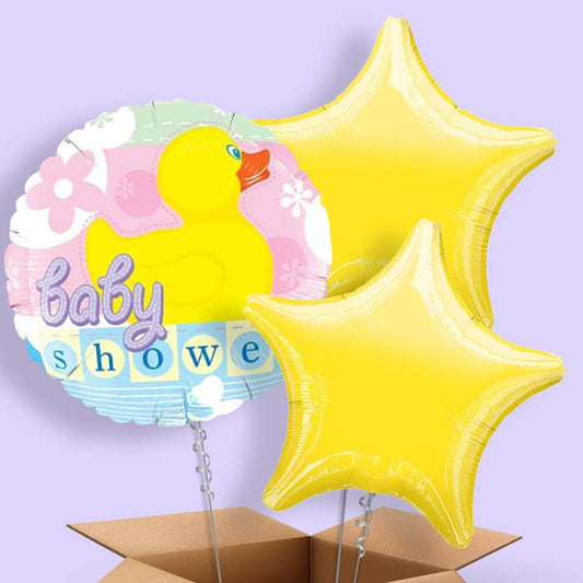 Neutral Baby Shower Helium Balloons in a Box (Duck)