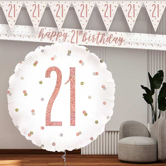 Rose Gold Holographic 21st Birthday Balloon and Banners