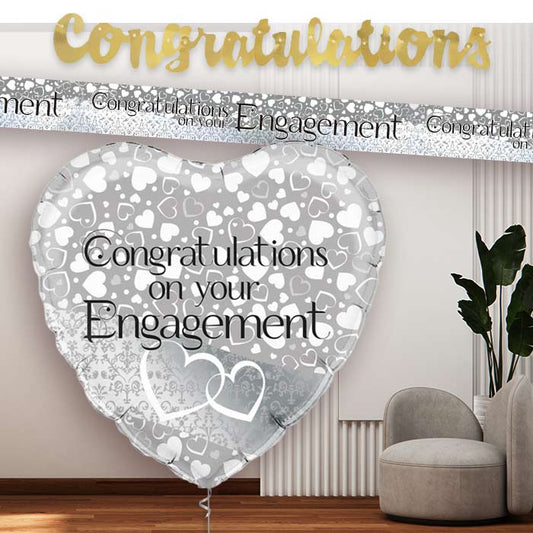 Silver Engagement Party Banners and Balloon