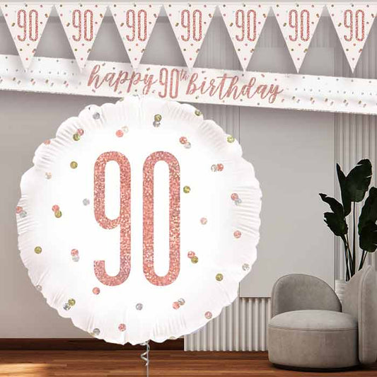 Rose Gold Holographic 90th Birthday Balloon and Banners