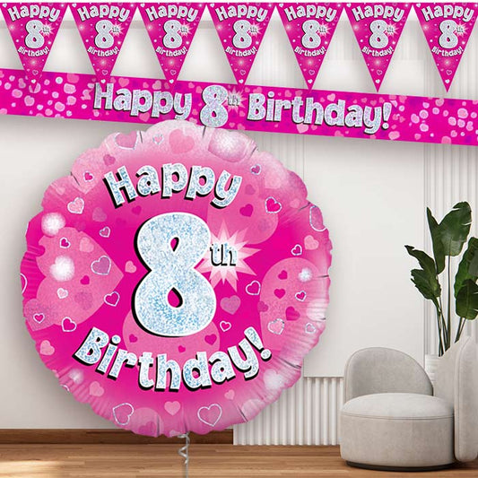 Pink Hearts 8th Balloon and Banners
