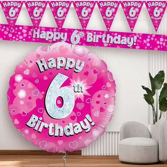 Pink Hearts 6th Balloon and Banners