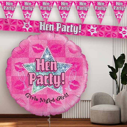 Pink Hen Party Balloon and Banners