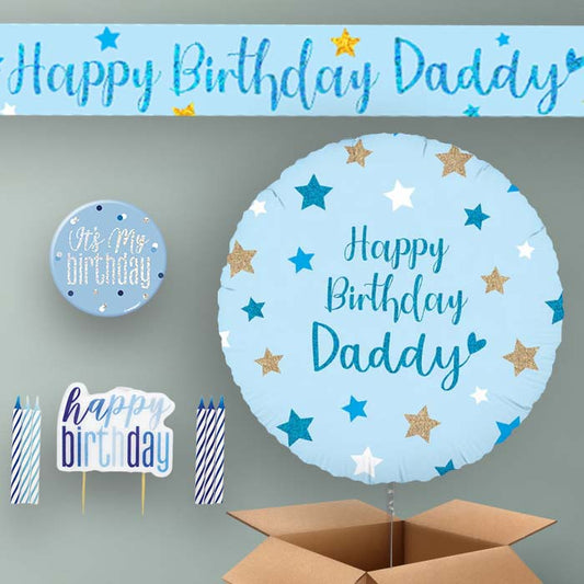 Daddy Birthday Helium Balloon & Decoration Package Blue Stars