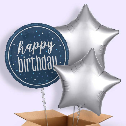 Navy Blue and Silver Happy Birthday Helium Balloon in a Box