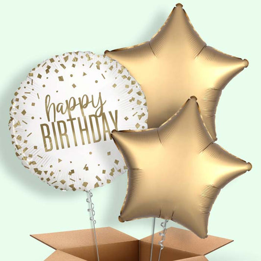 Gold Confetti Happy Birthday Helium Balloons in a Box