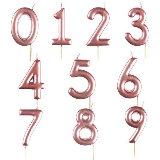 Metallic Rose Gold Cake Candles 0-9