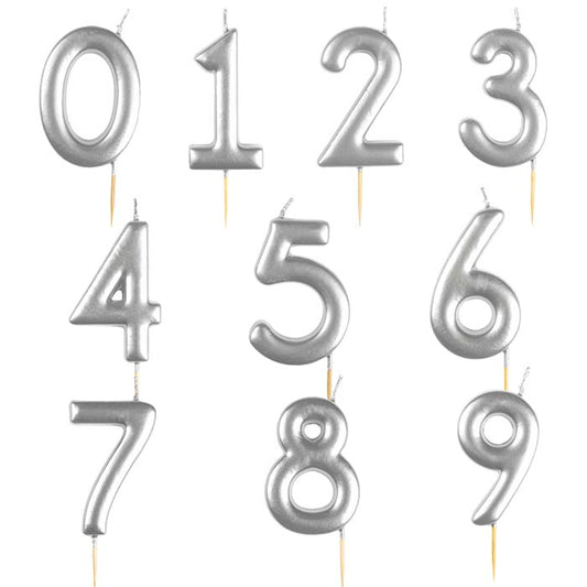 Silver Metallic Cake Candles Number 0-9