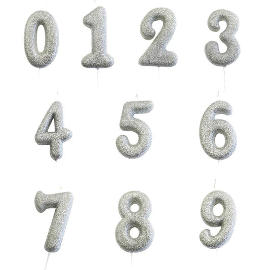Silver Glitter Number Cake Candles 0-9