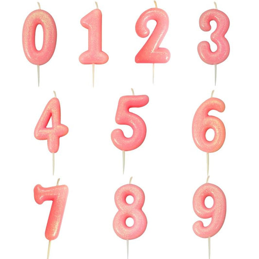 Pink Glitter Number Candles 0-9