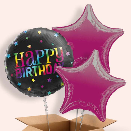Black Rainbow Happy Birthday Helium Balloon in a Box