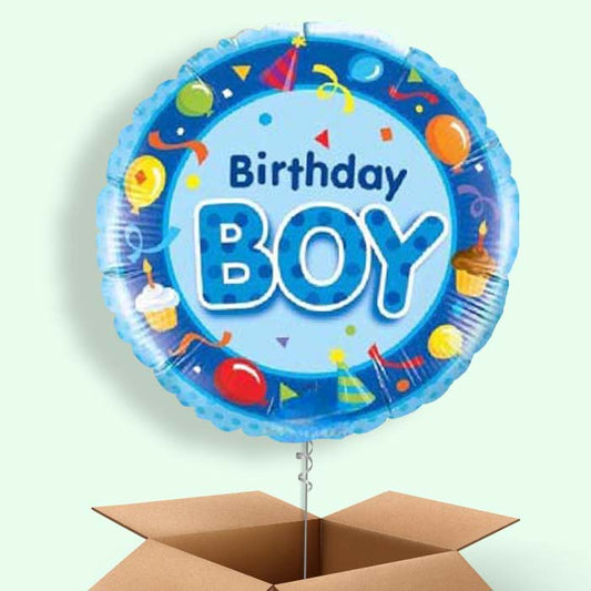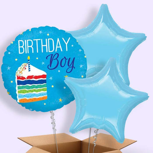 Birthday Boy Cake Blue Helium Balloon in a Box