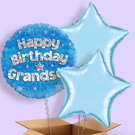 Happy Birthday Grandson Blue Stars Helium Balloon in a Box