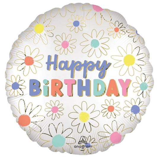 Satin Daisy Happy Birthday Foil Balloon 18 Inches