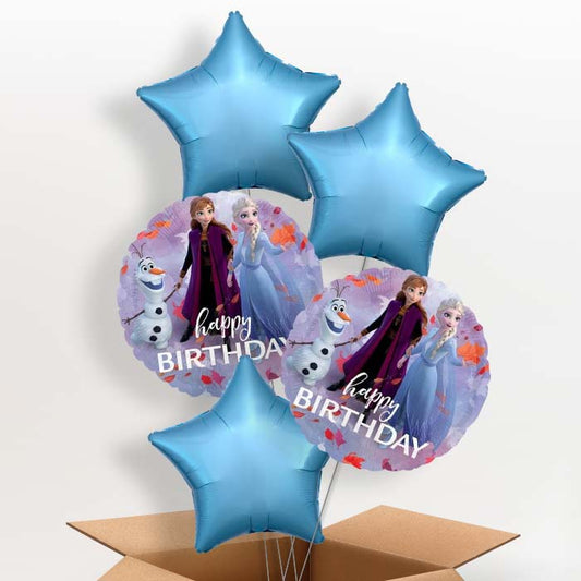 Come to mention it, we also deliver Disney Frozen helium balloons, these are Frozen balloons inflated with helium and delivered. We call this a Frozen Balloon in a Box, and we have lots of choice for you in our range which includes Anna, Elsa and Olaf, it even includes Frozen balloon bouquet delivery options.