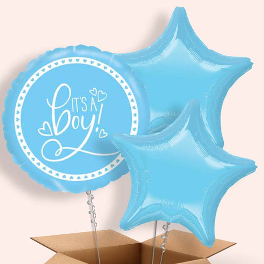 New Baby Boy Bunch of Balloons Inflated with Helium (Trio)