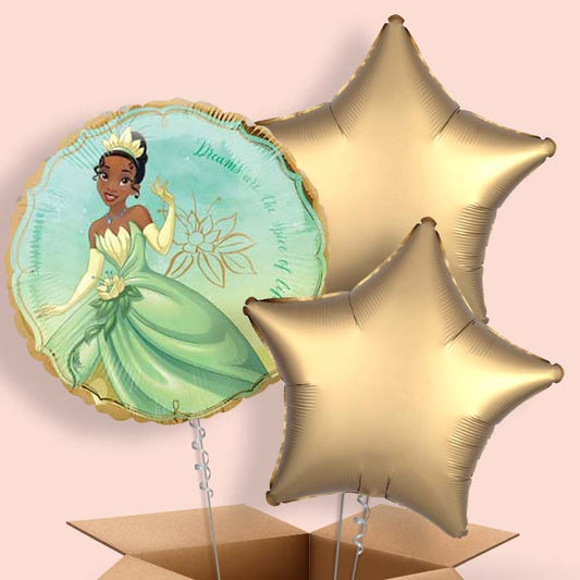 Princess Tiana Balloon Bunch inflated with Helium (Trio)