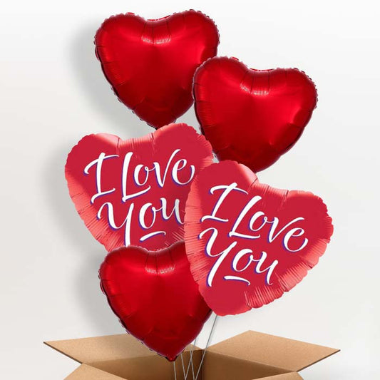 I Love You Helium Balloons in a Box (Red Heart)