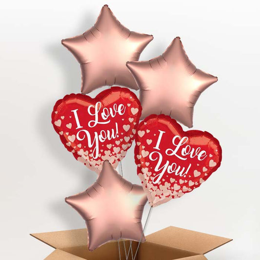 I Love You Helium Balloons in a Box (Rose Gold Hearts)